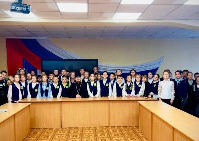По окончанию беседы иерей Василий Демчик поблагодарил детей за внимание и участие в диалоге, а преподавателей за приглашение и прекрасную подготовку читального зала, в котором состоялась встреча.