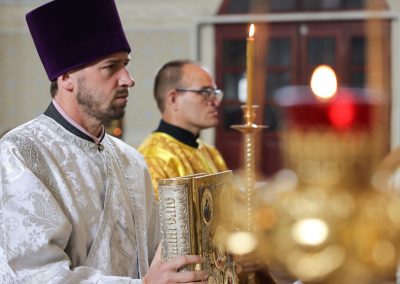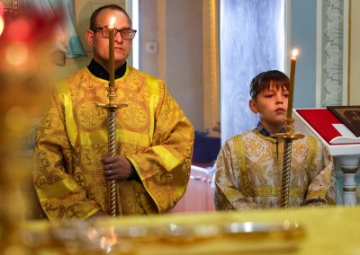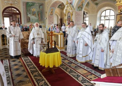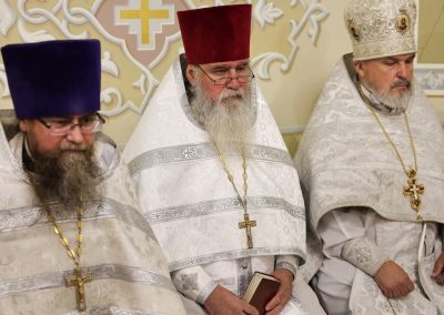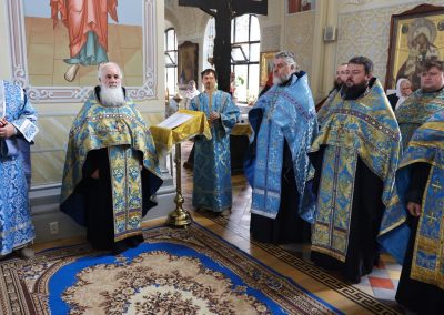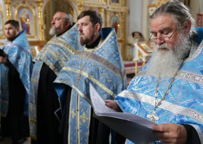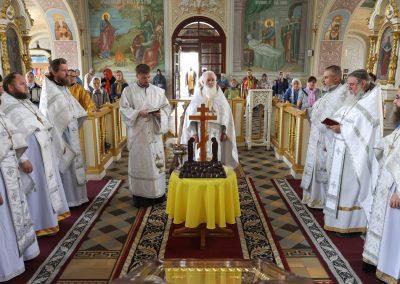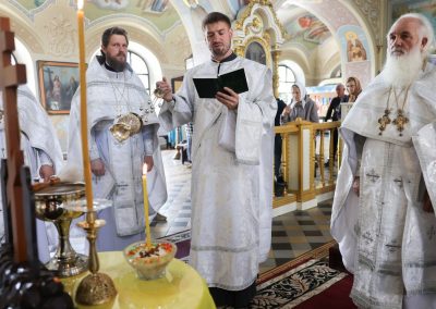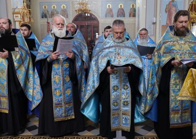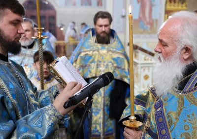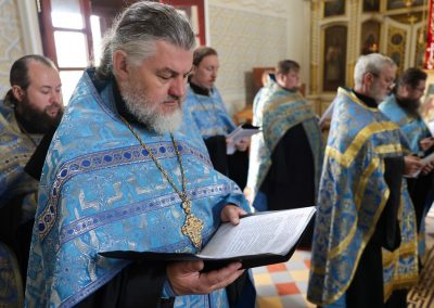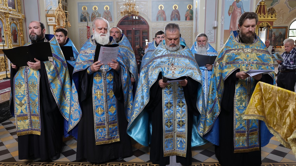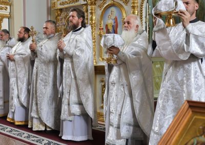 Богослужение возглавил духовник Епархии прот. Владимир Соловей в сослужении секретаря Епархии прот. Андрея Зозули, духовенства кафедральных соборов, а также духовенства, принявшего священный сан возложением рук приснопоминаемого владыки Митрофана.
