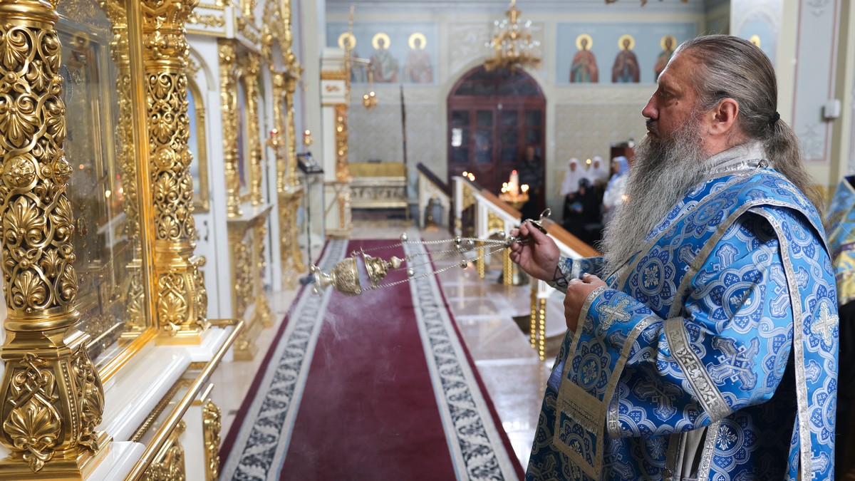 На заупокойной ектении возносились молитвенные прошения об упокоении души митрополита Митрофана и его отца раба Божия Иоанна.