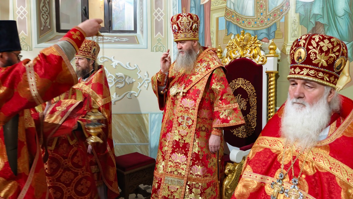 За Божественной литургией Его Высокопреосвященству сослужило духовенство кафедрального собора.