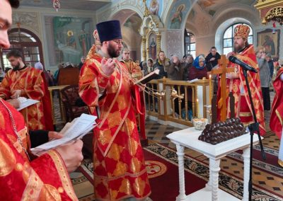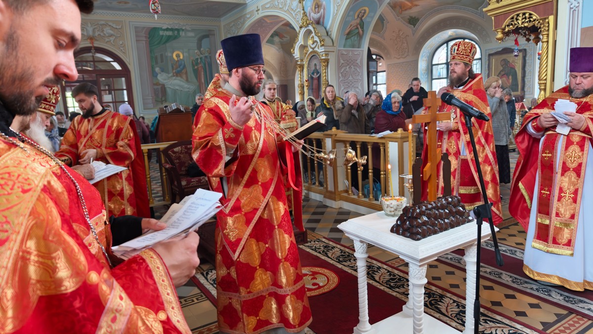 По окончании литургии владыка в сослужении духовенства, совершил в соборе панихиду пасхальным чином.