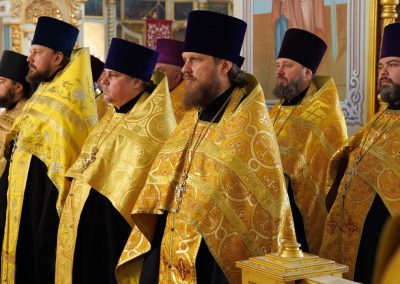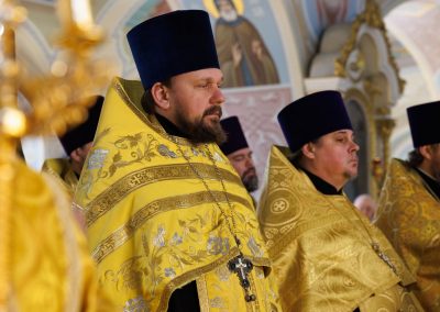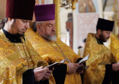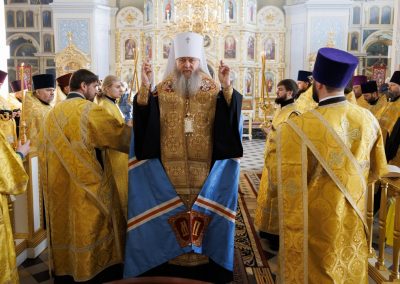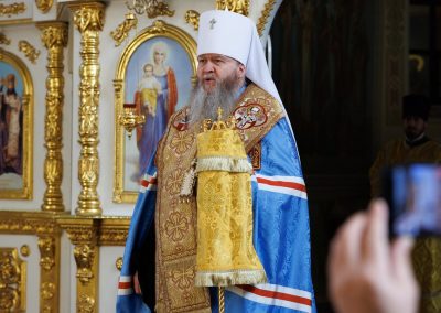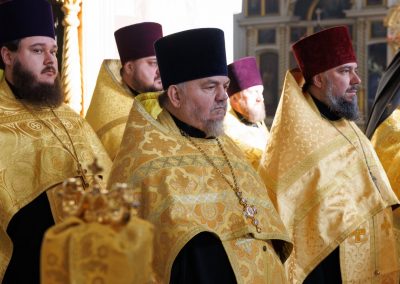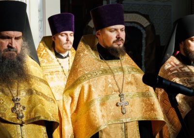 Молебен совершил Высокопреосвященнейший Пантелеимон, митрополит Луганский и Алчевский в сослужении руководителей всех епархиальных отделов и комиссий, и в том числе принимавших участие в форуме от Луганской Епархии.