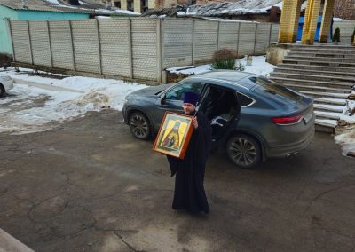Святыня была доставлена ответственным за принесение иконы в Епархии Русской Православной Церкви, клириком Пантелеимоновского храма г. Пушкино протоиереем Сергием Климовым.