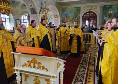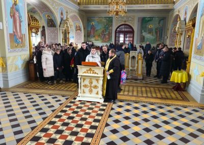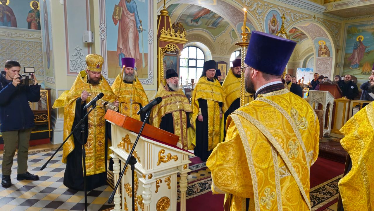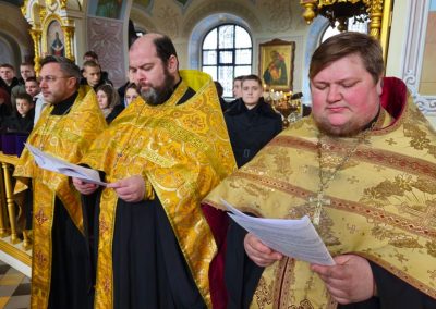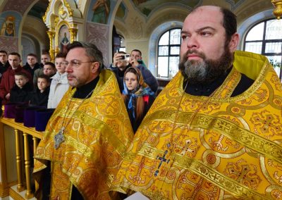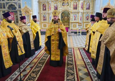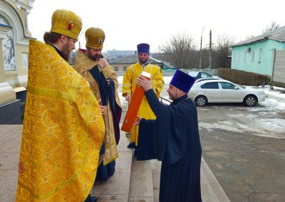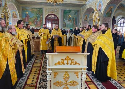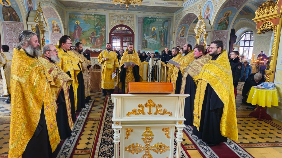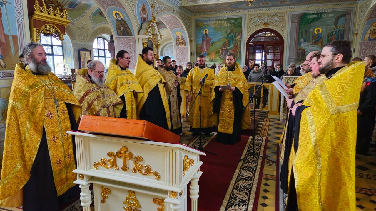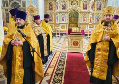 Сразу после встречи пред иконой был отслужен молебен с акафистом, который по благословению Правящего архиерея возглавил секретарь Епархии прот. Андрей Зозуля в сослужении городского духовенства.