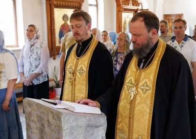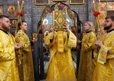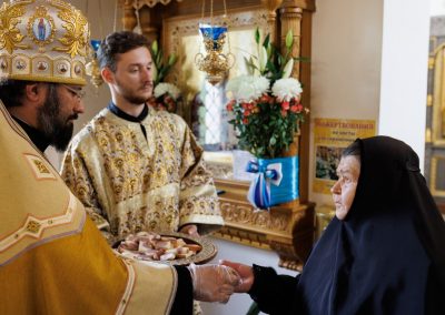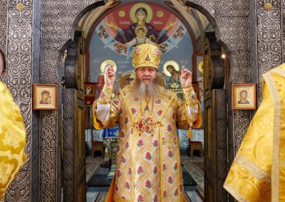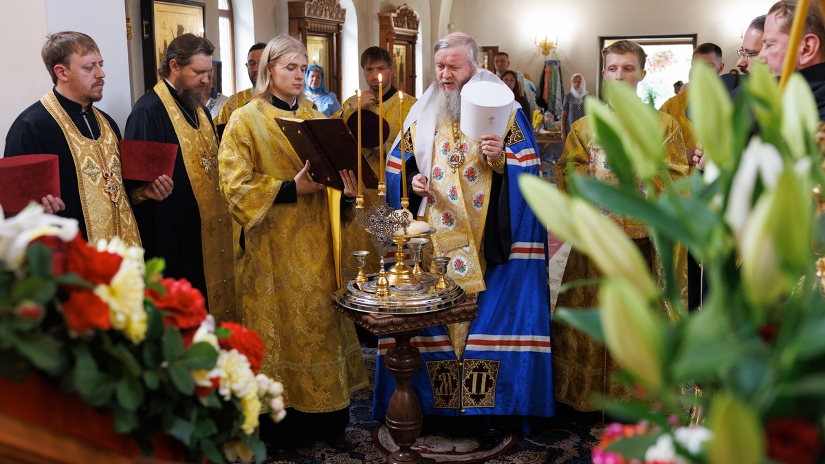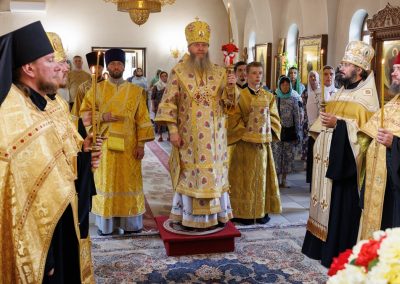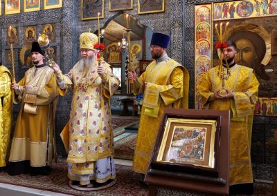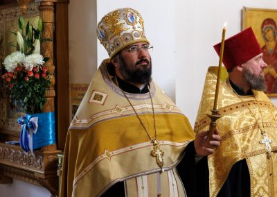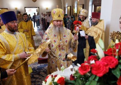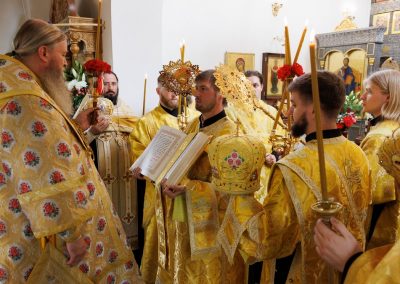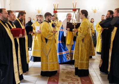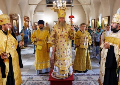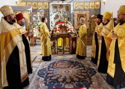 За богослужением Его Высокопреосвященству сослужил секретарь Епархии прот. Андрей Зозуля, наместник Вознесенского монастыря архим. Иоанн (Сухина) с братией подворья.