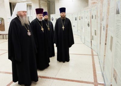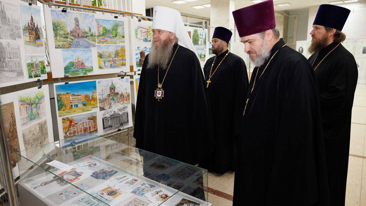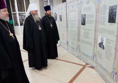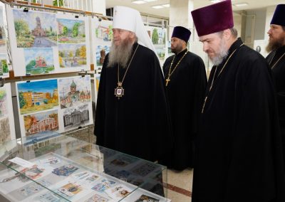 До начала заседания, митрополит Пантелеимон в холле музея ознакомился с передвижным выставочным проектом Ф.И Тютчева «Славянский мир, сомкнись тесней», а также с выставкой работ художественных школ и художественных отделений школ искусств ЛНР «Архитектурное наследие Луганщины глазами детей».