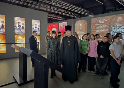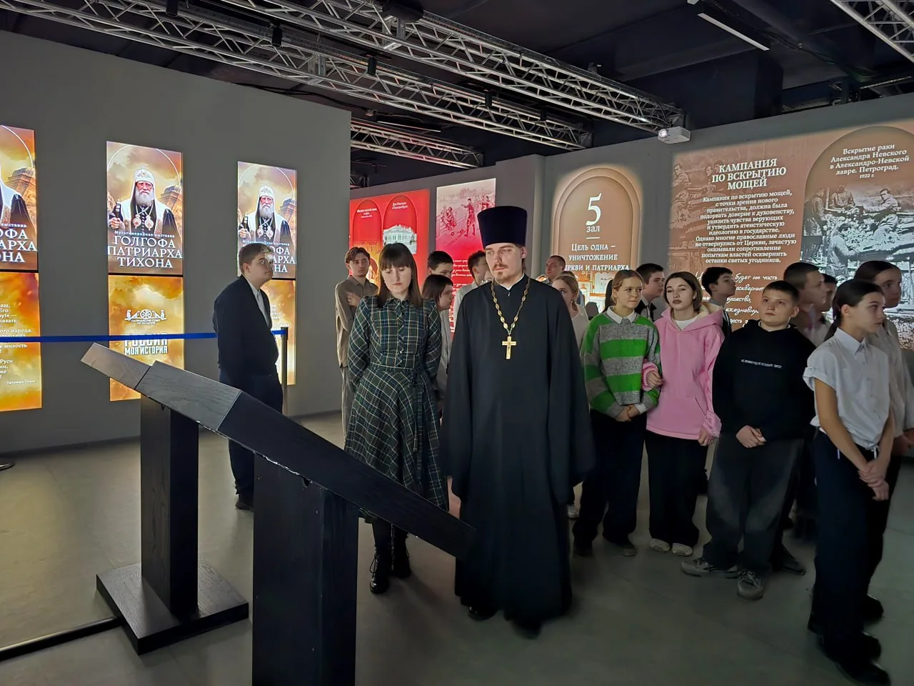 Для гостей была проведена первая экскурсия, в ходе которой раскрывались масштаб и глубина подвижничества Патриарха Тихона. Экспозиция наглядно показывает, как святитель, являя собой образец стойкости и мудрости, противостоял тяжелейшим испытаниям эпохи: революционным потрясениям, Гражданской войне, жестоким гонениям на Церковь и обновленческому расколу, оставаясь непоколебимым столпом веры и миротворцем для миллионов православных.