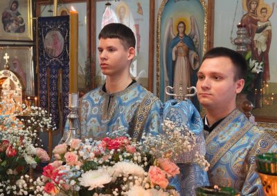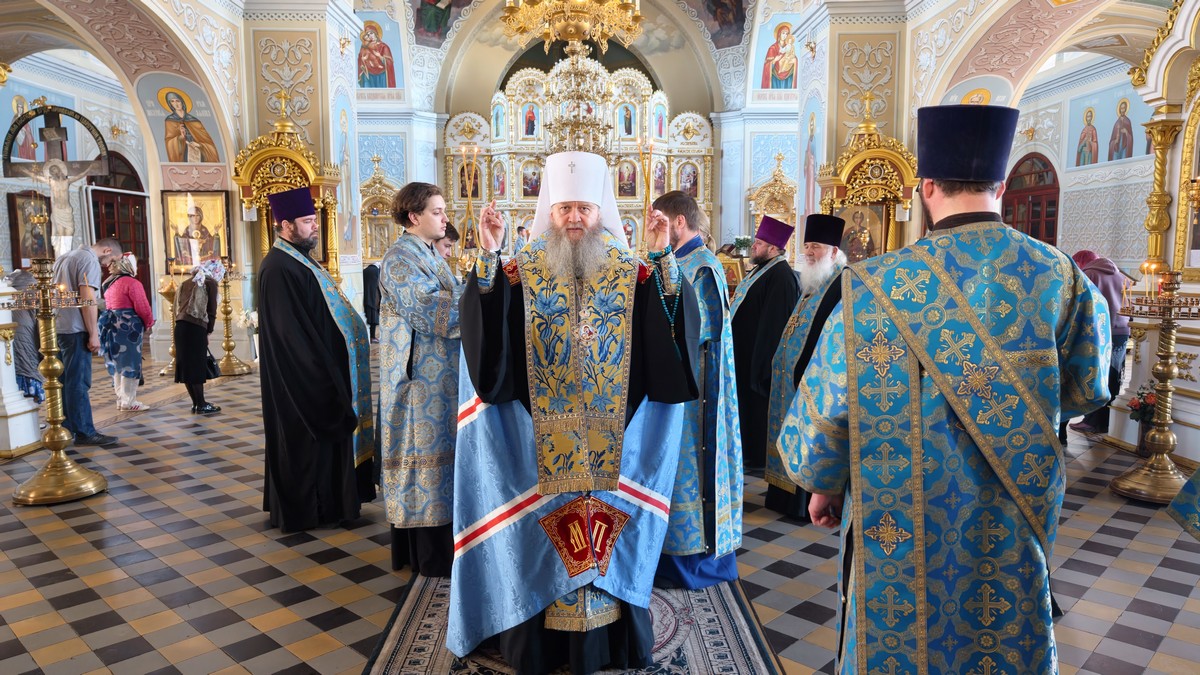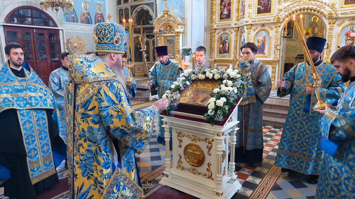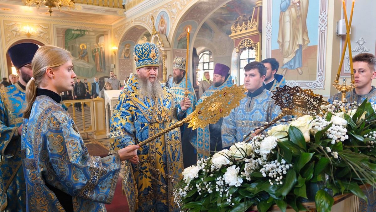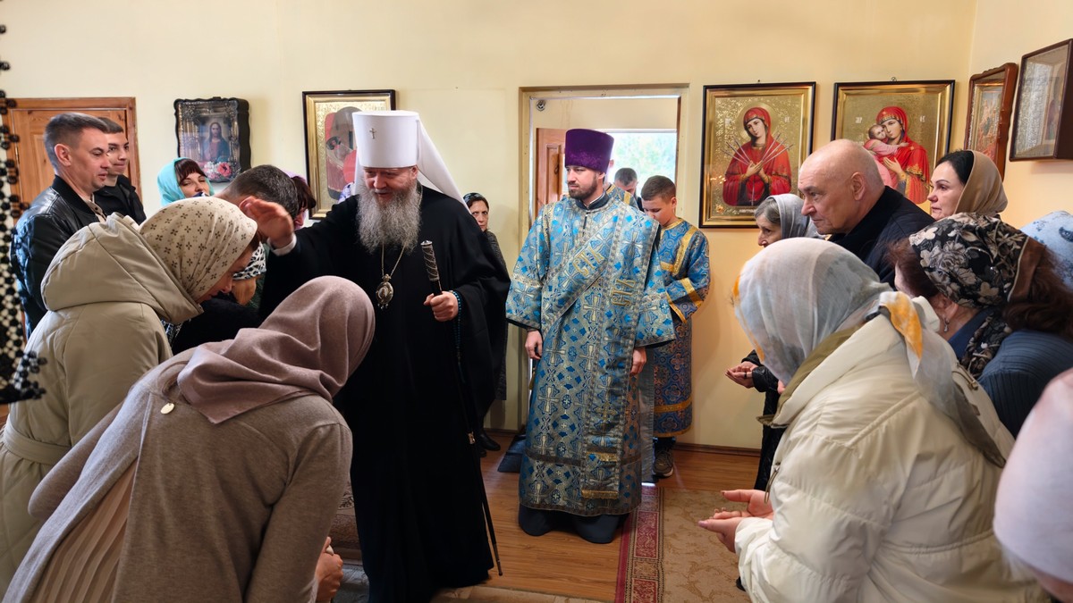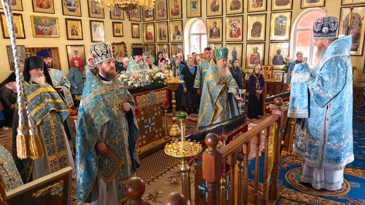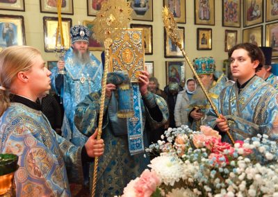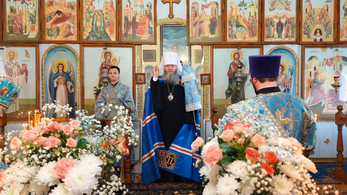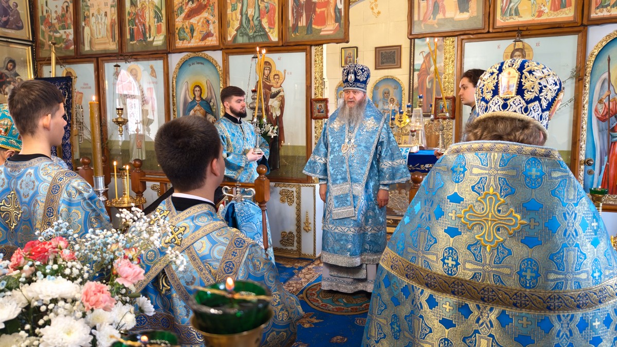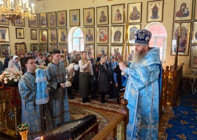Затем, архипастырь поздравил духовенство и верующий народ с двунадесятым праздником, престольным днем храма и пожелал всем благодатной помощи Царицы Небесной.