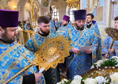 По окончании богослужения была прочитана молитва и совершено славление праздника Благовещения Пресвятой Богородицы.