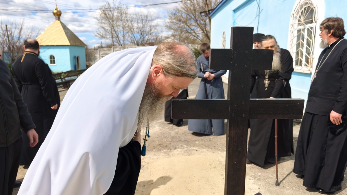 На территории храма, владыка со священнослужителями вознес заупокойную молитву по новопреставленной схимонахине Матроне (Лазаревой), долгие годы усердно трудившейся в храме на различных послушаниях.