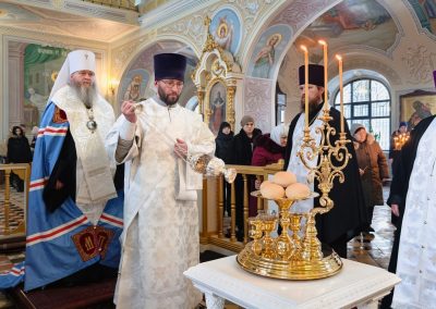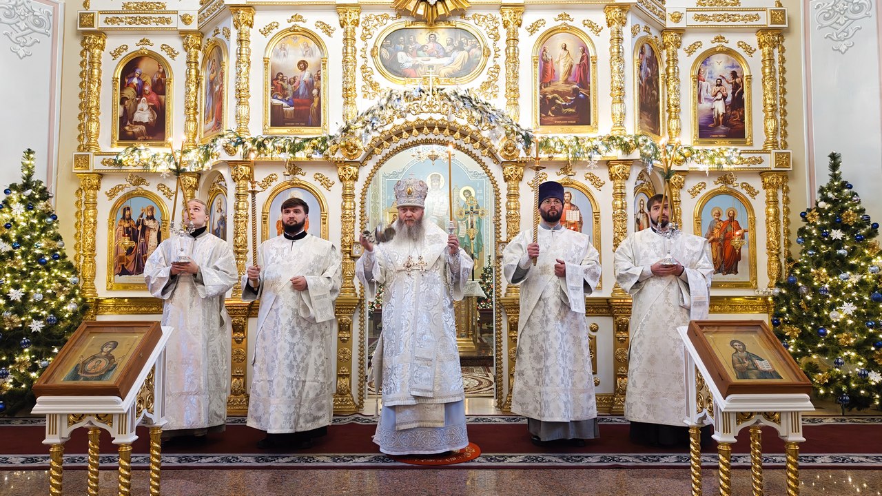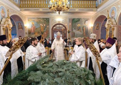 Накануне праздника, вечером 18 января, владыка Пантелеимон совершил Утреню Богоявления в Петро-Павловском кафедральном соборе.