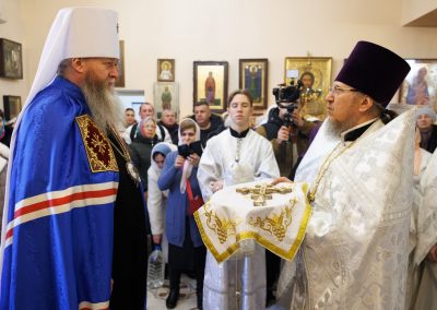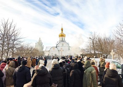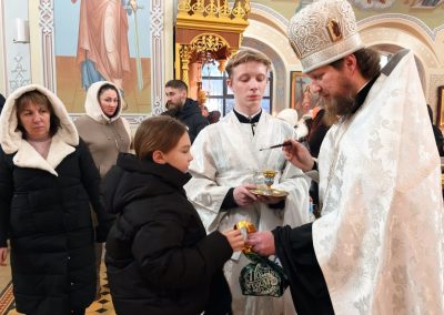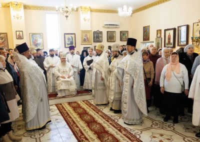 За Литургией митрополиту Пантелеимону сослужили духовник Епархии протоиерей Владимир Соловей, благочинный первого городского округа протоиерей Алексий Болдырев, а также приглашенное духовенство. В молитвенном настроении вместе с паствой за богослужением молилась временно исполняющая полномочия главы муниципального образования городской округ город Луганск ЛНР, Яна Валерьевна Пащенко.