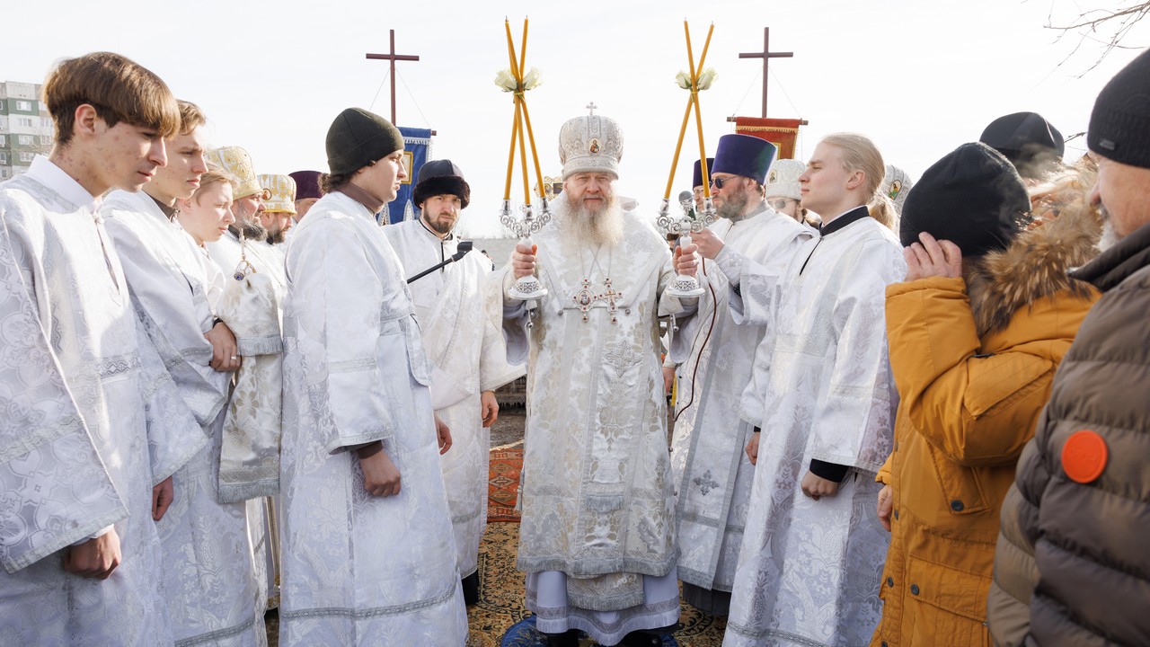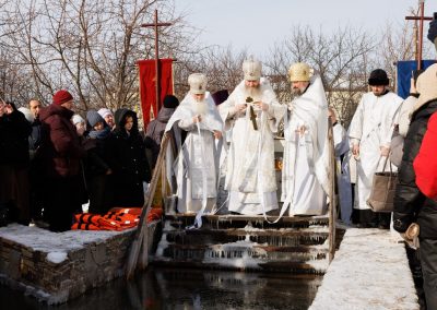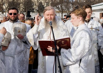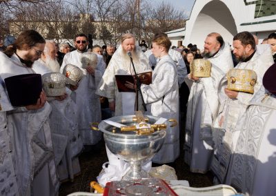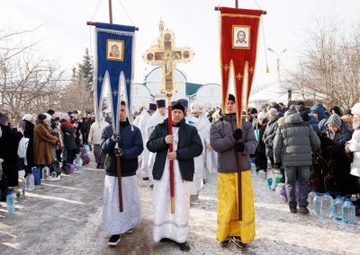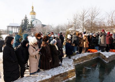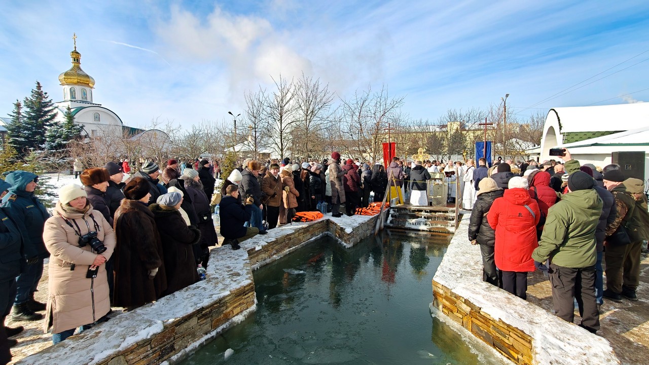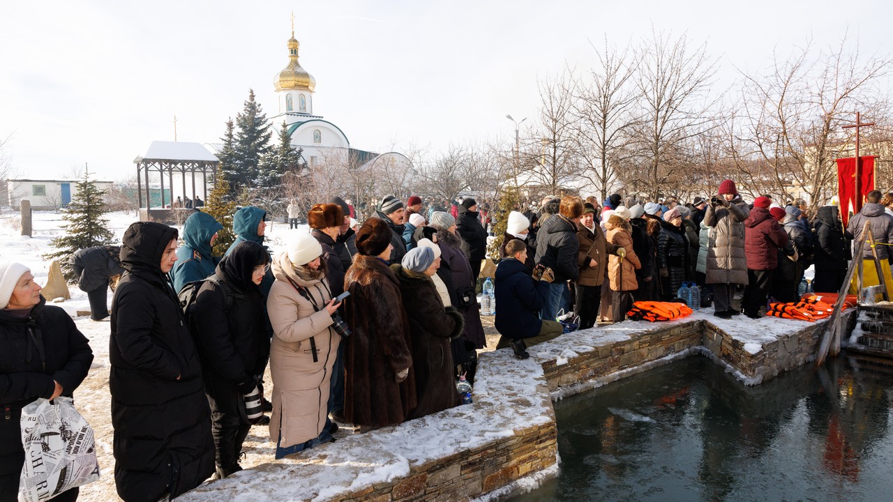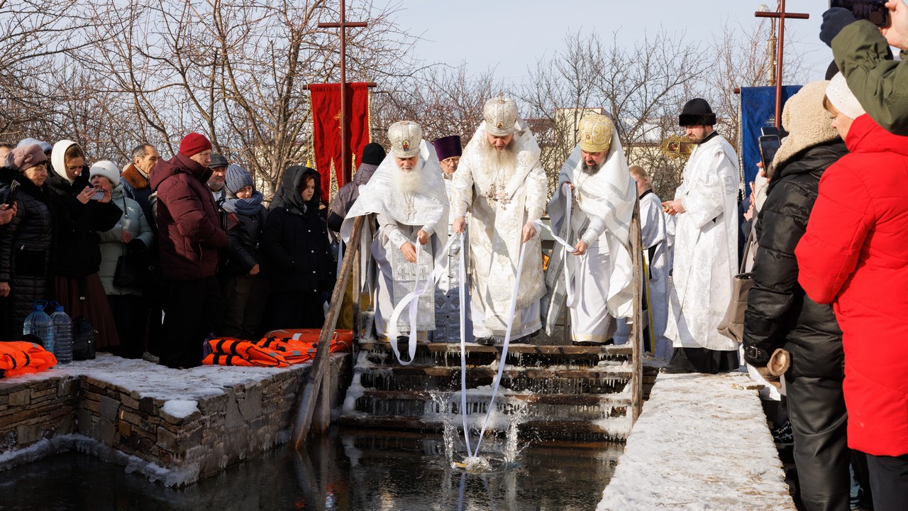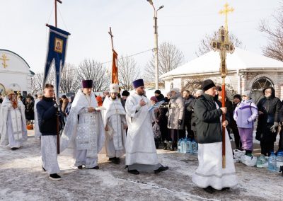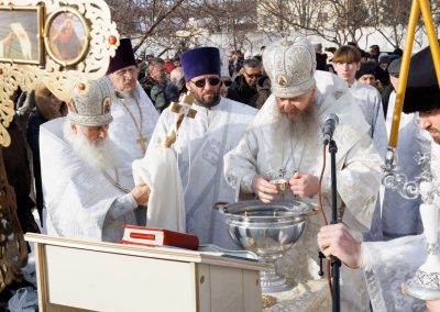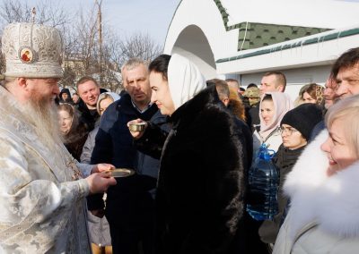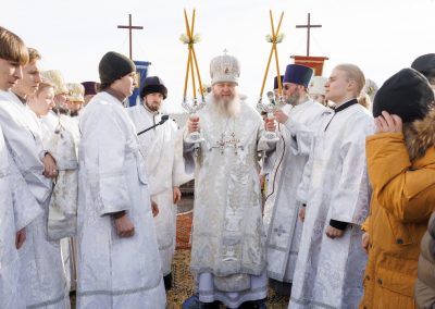 По окончании Литургии владыка Пантелеимон совершил чин Великого освящения воды, освятил купель, устроенную на территории храма, и окропил молящихся святой водой.