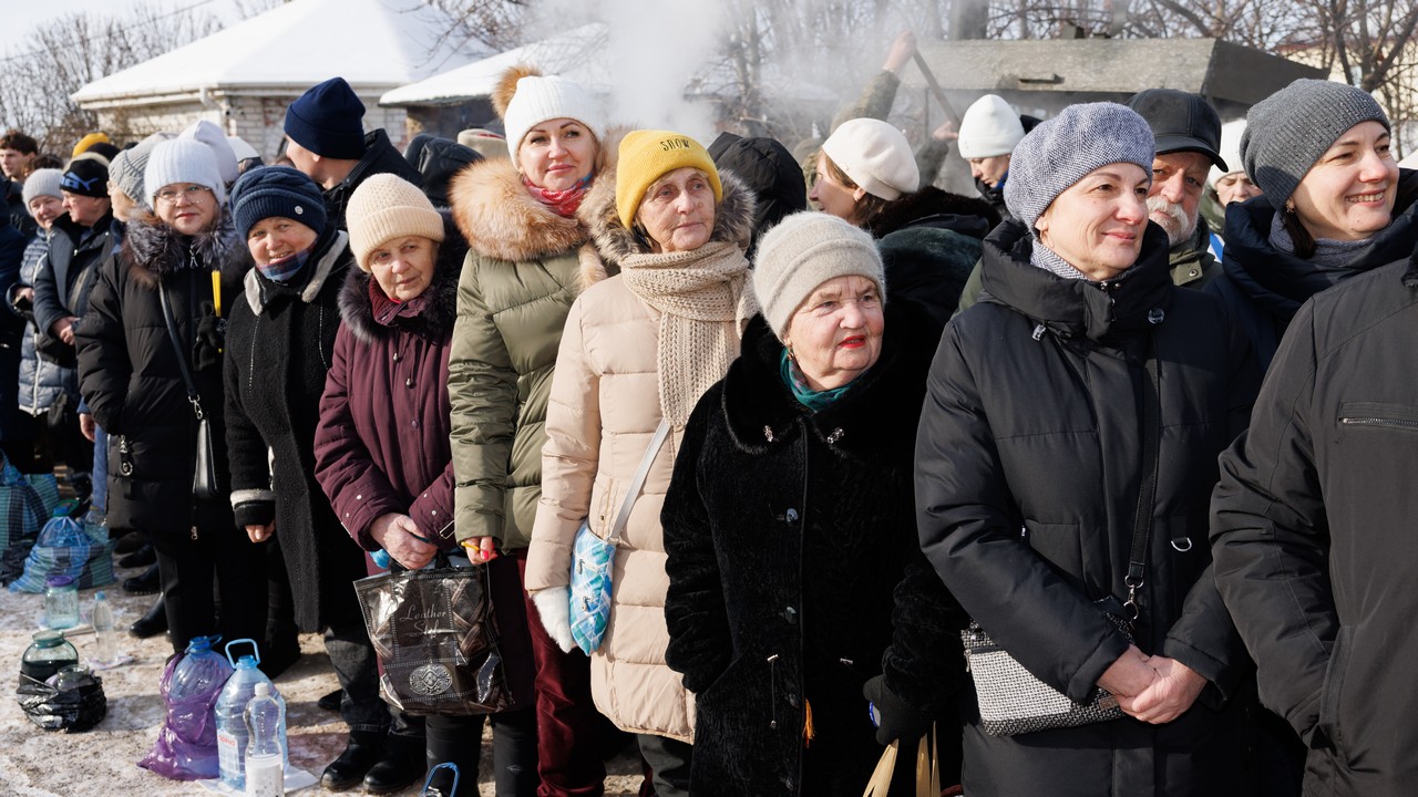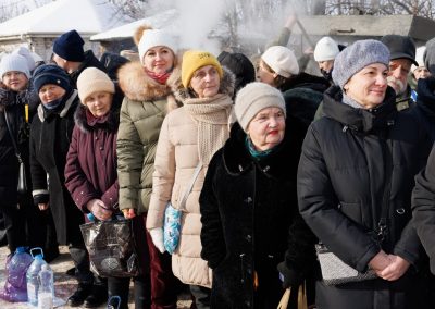 После погружения в ледяную воду купели, верующие согревались горячим чаем и пищей, приготовленной на полевой кухне.