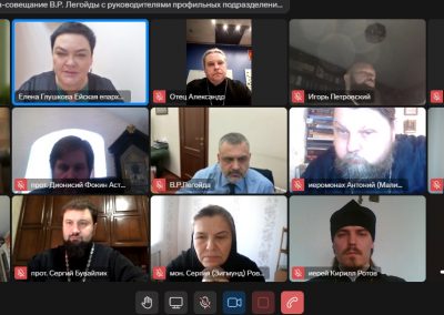 Председатель Синодального отдела по взаимоотношениям Церкви с обществом и СМИ В.Р. Легойда провел совещание с руководителями информационных подразделений и пресс-служб епархий, расположенных на территории Южного и Северо-Кавказского федеральных округов, ДНР, ЛНР, Запорожской и Херсонской областей. Совещание прошло в режиме видеоконференцсвязи на платформе Контур.Толк.