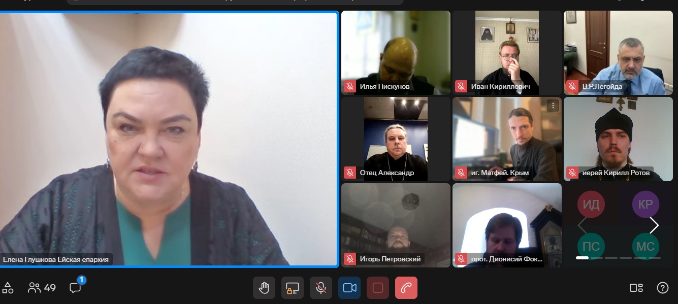 В завершение совещания с кратким сообщением выступила руководитель отдела Ейской епархии по взаимодействию с обществом и СМИ Е.В. Глушкова, которая рассказала о социальном телевизионном проекте «Детям о Церкви», реализуемом в Ейской епархии с 2021 года.
