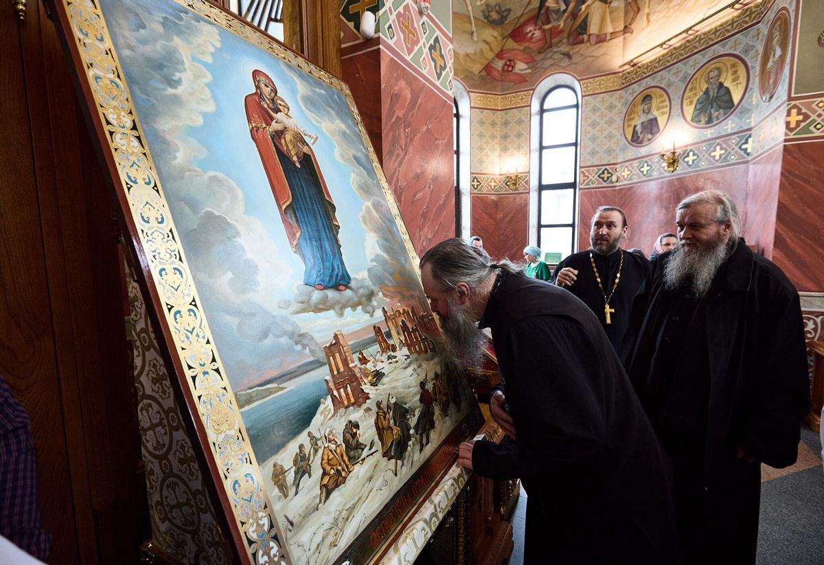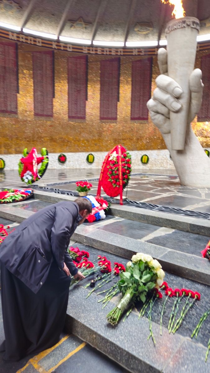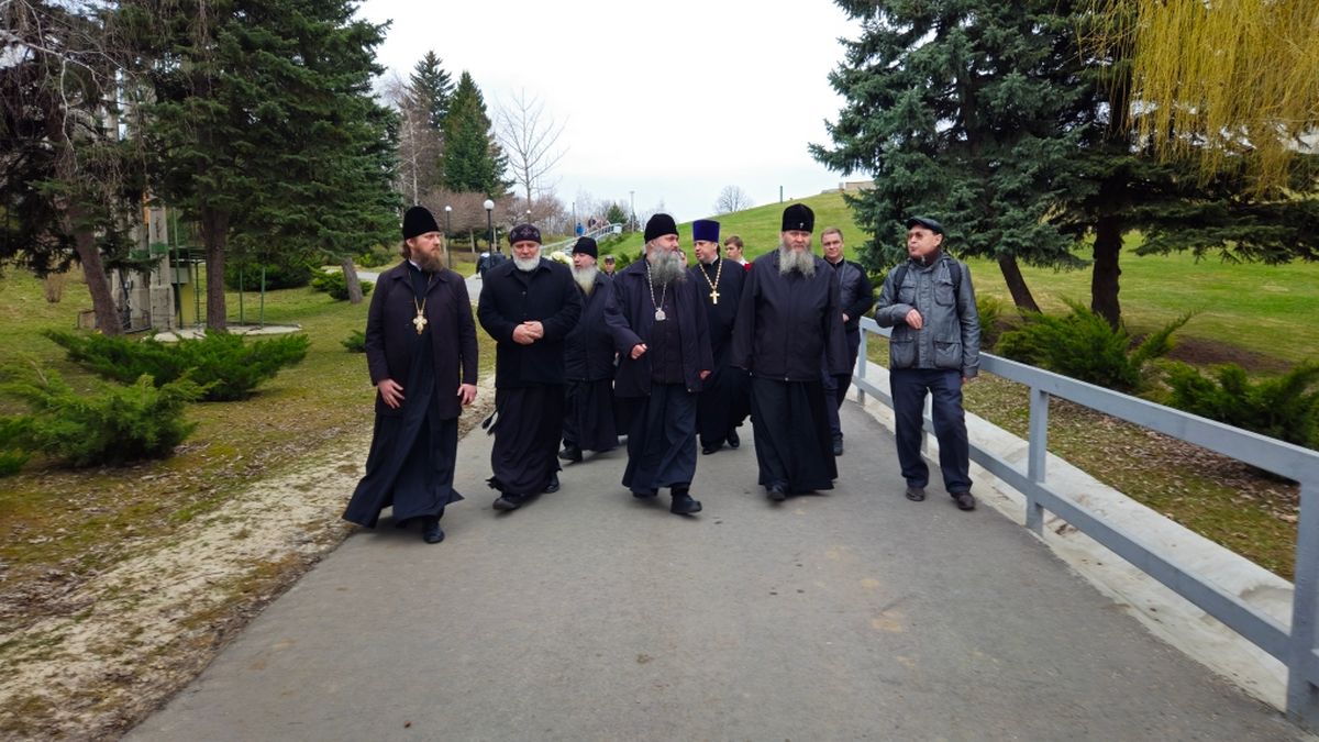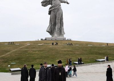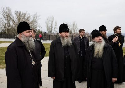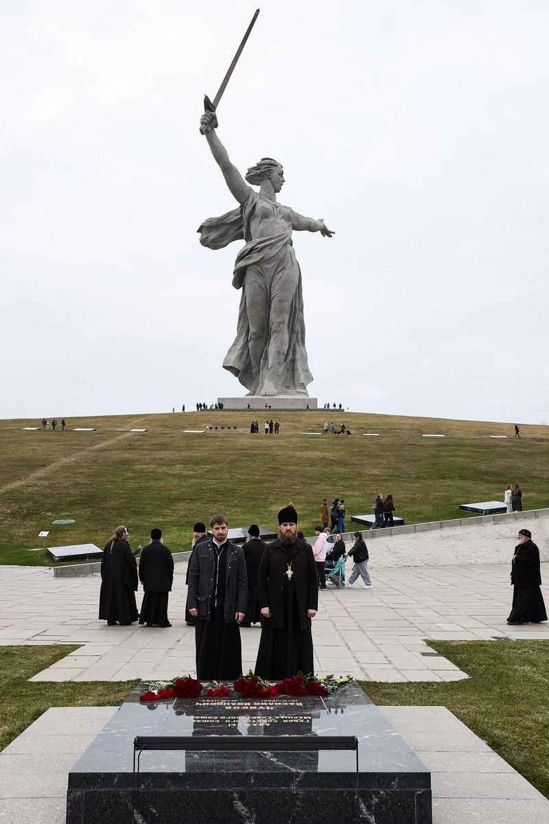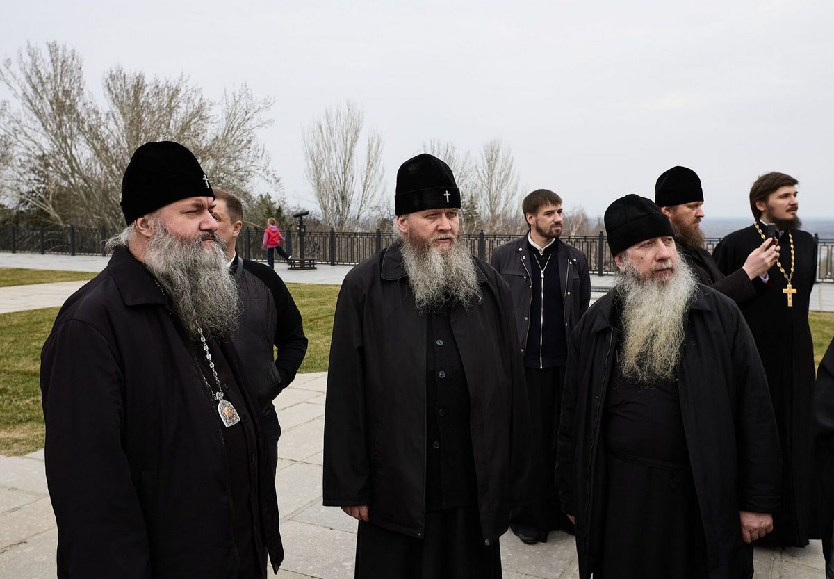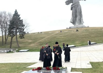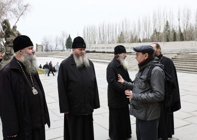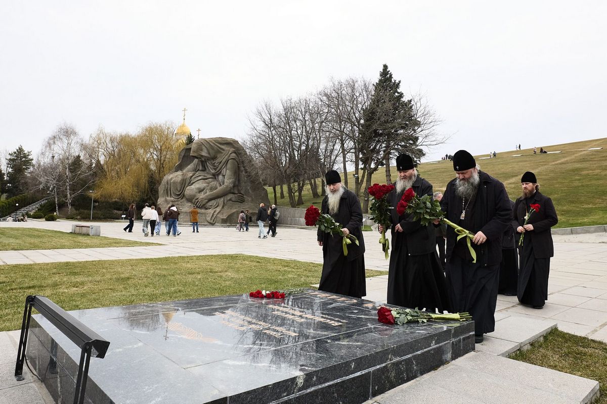 29 марта, гости Волгоградской епархии митрополит Луганский и Алчевский Пантелеимон, митрополит Самарский и Новокуйбышевский Феодосий, епископ Костомукшский и Кемский Борис и сопровождающее духовенство посетили Мамаев курган.