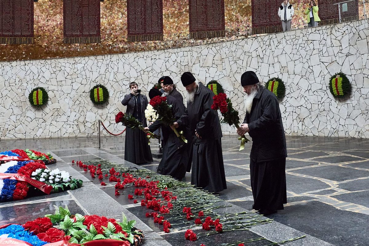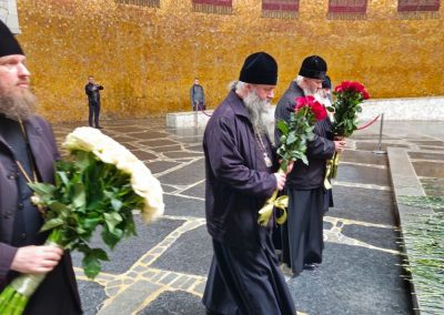 Архиереи и духовенство возложили цветы к вечному огню в Зале Воинской Славы и на могилу Маршала В.И. Чуйкова.