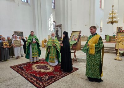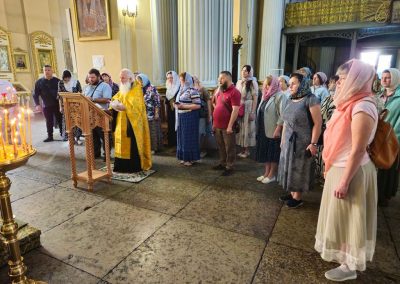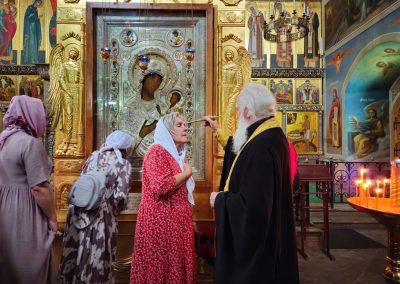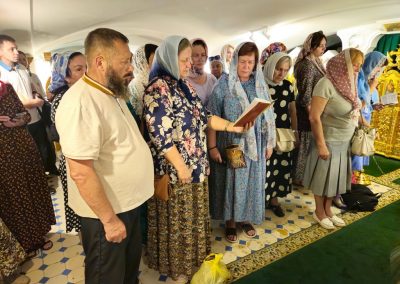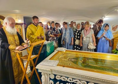 Во время путешествия практически ежедневно духовенство нашей Епархии принимало участие в Божественных литургиях, на которых паломники причащались Тела и Крови Христовых. Возле значимых святынь совершались молебные пения с чтением акафистов, а также панихиды у могил подвижников Веры Православной.