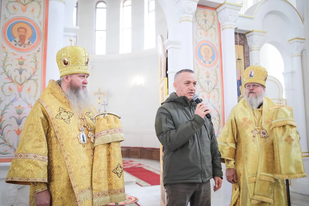 По окончании Литургии архипастыри обменялись взаимными приветствиями.