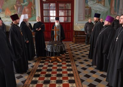 Утром 24 февраля, во вторник первой седмицы Великого поста, Высокопреосвященнейший Пантелеимон, митрополит Луганский и Алчевский, молился за уставными Великопостными богослужениями в Петро-Павловском кафедральном соборе.